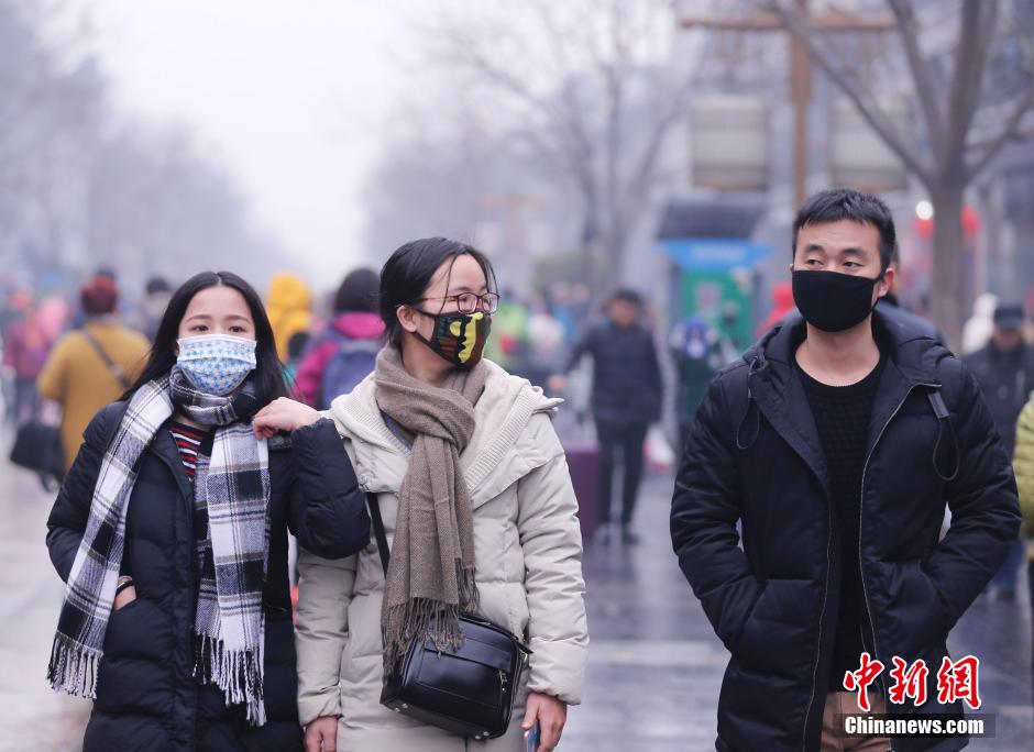 2月11日,北京开启“阴雨模式”,气温有所下降,回暖旋律戛然而止。同时,受不利扩散条件影响,局地空气质量再度降至重度污染水平。图为在北京前门大街游玩的市民。 中新社记者 杜洋 摄