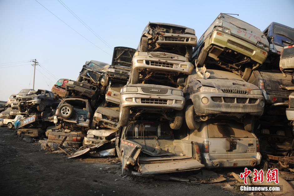 山东东营现汽车“坟场” 堆积如山场面壮观