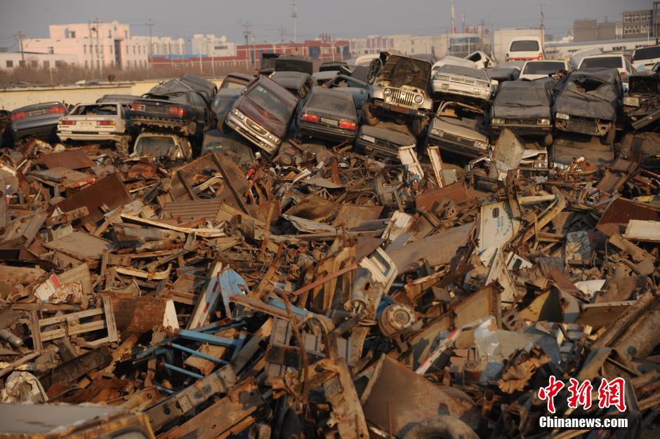 山东东营现汽车“坟场” 堆积如山场面壮观