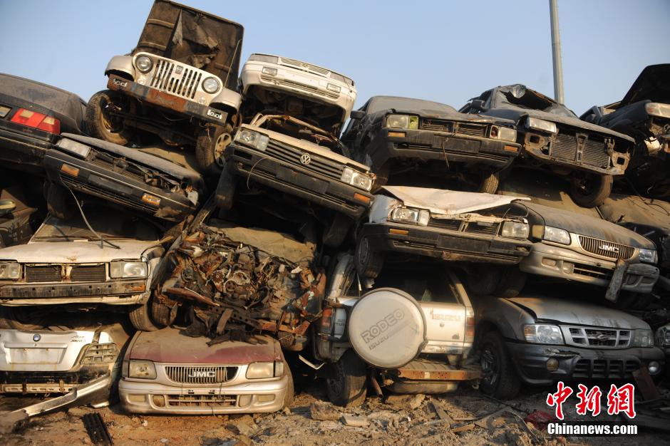 山东东营现汽车“坟场” 堆积如山场面壮观