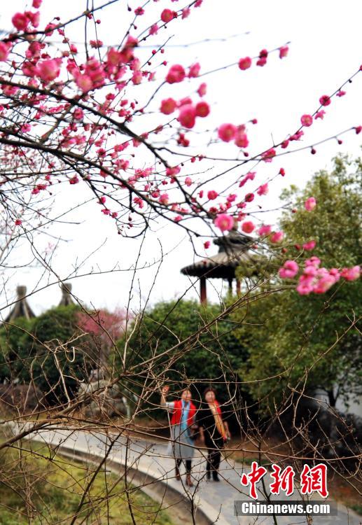 2月11日,游客在南昌市八大山人梅湖景区赏花。春节期间,位于江西省南昌市青云谱区的八大山人梅湖景区梅花盛开,芳香四溢,吸引市民、游客前来赏花踏青。 鲍赣生 摄