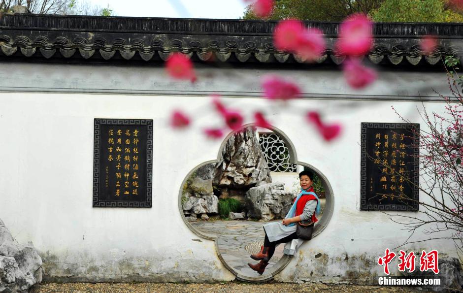 2月11日,游客在南昌市八大山人梅湖景区赏花。春节期间,位于江西省南昌市青云谱区的八大山人梅湖景区梅花盛开,芳香四溢,吸引市民、游客前来赏花踏青。 鲍赣生 摄
