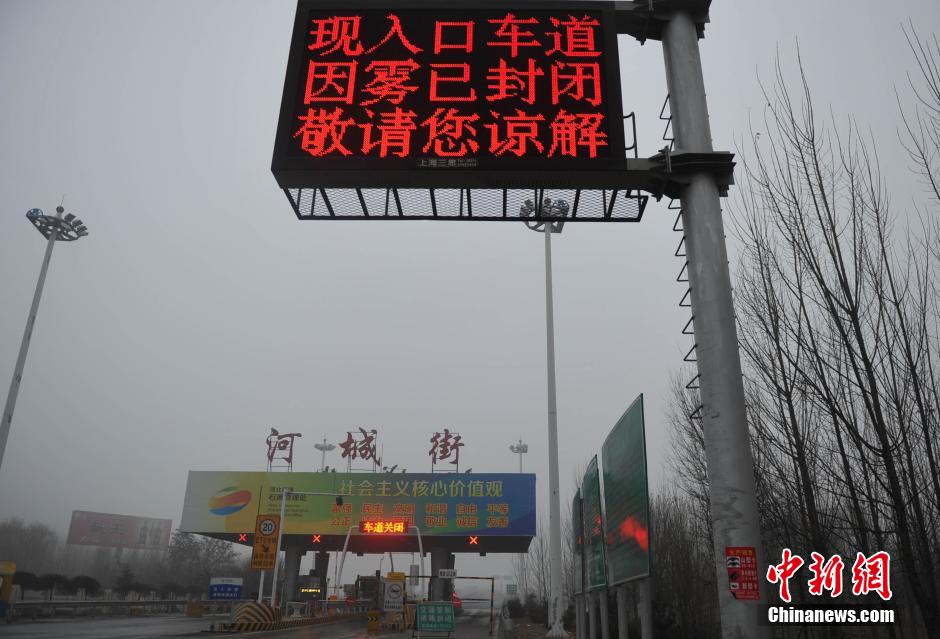2月12日春节假期,受大雾影响,河北沧州的河城街和大陈庄高速口,上道出行的民众排队等待。河北高速交警总队指挥中心官方微博显示,宣大高速、张石高速蔚县段、唐津高速、秦皇岛的沿海高速以及北京以南石家庄周边沿线站口等多条高速全部关闭。 中新社记者 翟羽佳 摄