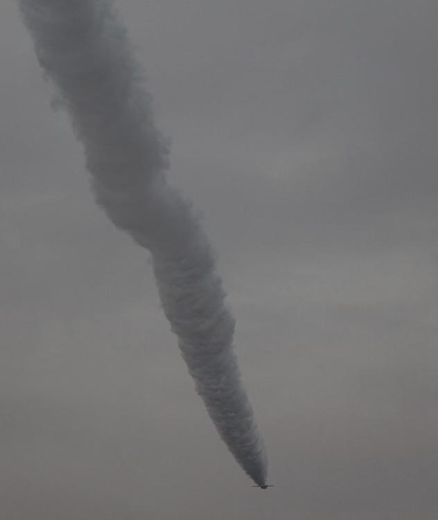 2101号歼-20在试飞中拉烟。
