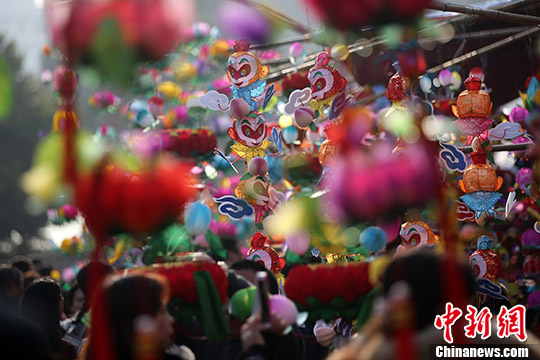 2月12日,市民在南京夫子庙逛花灯市场。农历猴年新春,南京夫子庙花灯市场如期开市,数十万盏五彩斑斓、造型各异的花灯集中亮相,尤其以猴为造型的花灯,受到了市民和游客的青睐。
