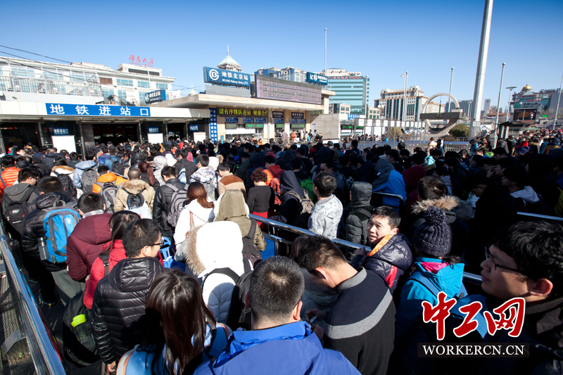 图为地铁北京站入口处人潮涌动。 中工网记者 李雪峰 摄