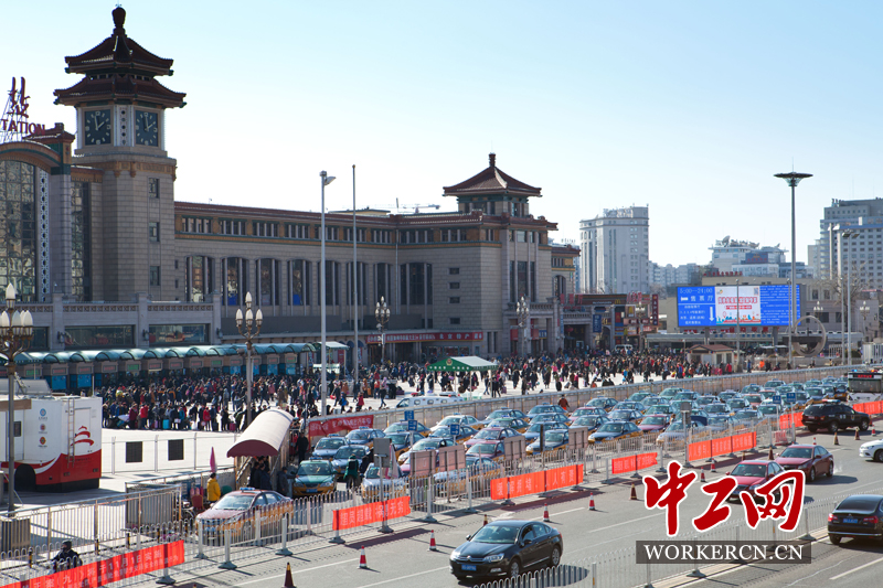 北京站广场人潮涌动。 中工网记者 李雪峰 摄