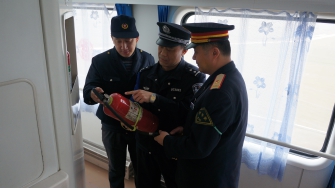 春运是每年旅客运输的高峰期,对于客流输送的主力军铁路部门而言,每年春运将接受严峻挑战。为安全、优质运送旅客回家,青岛客运段值乘的烟台至北京K285/6次列车每一趟乘务都以旅客运输的安全为重中之重,做好每一个安全的细节工作!为旅客返乡过年、外出打工,打造安全之旅!图一为列车长和乘警长、检车长三乘一起检查消防设施。