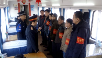 今年铁总为了确保春运期间旅客运输安全在全路旅客车上是开展治安联防工作,从坐车的旅客当中筛选公安,武警,现役军人,退伍军人等素质高的年轻旅客组建治安联防队。治安联防员佩戴红色《治安联防》袖标,在每节车厢协助乘务员维持车厢治安。青岛客运段烟台到北京的K286/5次列车认真的落实了这项工作,春运至今无一起治安事件发生!为旅客平安出行,保驾护航!图一为列车长在给治安联防员讲解注意事项。