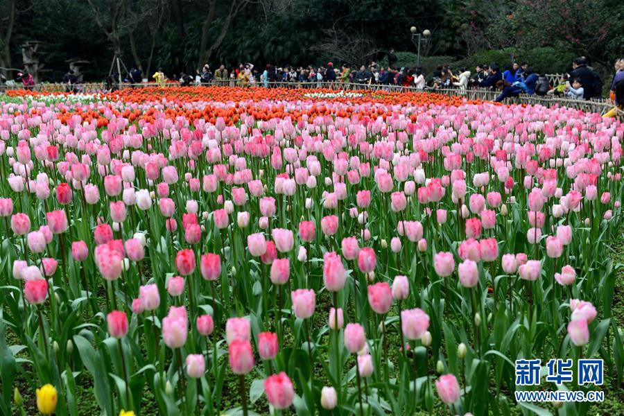 2月24日,游客在重庆渝北区花卉园观赏盛开的郁金香。连日来,重庆天气晴好,重庆花卉园从荷兰引进的8万多株郁金香进入盛花期,整个园区繁花盛开、春意盎然,吸引众多游客前来观赏。新华社发(钟桂林 摄)