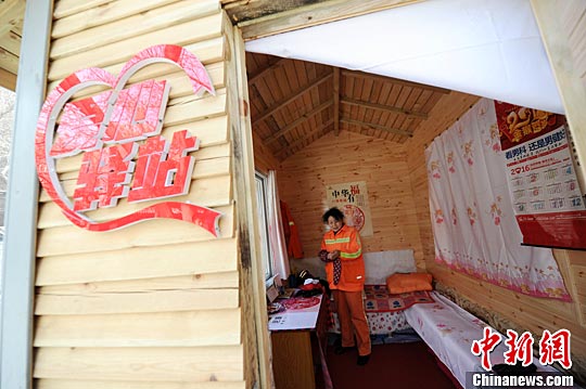该驿站里面不仅配备了供环卫工人休息的桌椅,还配备了微波炉、暖水壶、报刊架、一次性水杯等生活用品。中新社记者 杨艳敏 摄