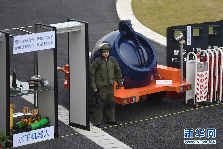 水下机器人、半挂式防爆桶等安保装备在G20杭州峰会安保装备发放仪式现场展示(2月29日摄)。 2月29日,浙江省公安厅在杭州市公安局特警支队举行G20杭州峰会安保装备发放仪式,为杭州及环杭州区域公安机关发放一批价值500余万元、总计3000余件安保装备。新华社记者黄宗治摄