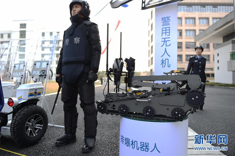 这是G20杭州峰会安保装备发放仪式现场展示的排爆机器人(2月29日摄)。 2月29日,浙江省公安厅在杭州市公安局特警支队举行G20杭州峰会安保装备发放仪式,为杭州及环杭州区域公安机关发放一批价值500余万元、总计3000余件安保装备。新华社记者黄宗治摄