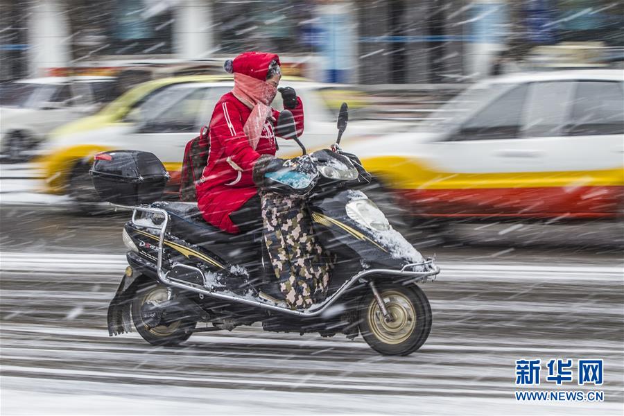 3月2日,在吉林省洮南市,市民冒雪出行。当日,吉林省部分地区迎来雨夹雪天气,预计本轮降雨降雪将持续至3月5日。 新华社发(邱会宁 摄)