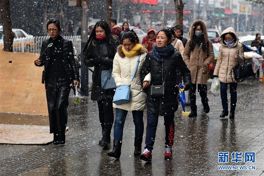 3月2日,长春市民冒雪出行。当日,吉林省部分地区迎来雨夹雪天气,预计本轮降雨降雪将持续至3月5日。 新华社记者 张楠 摄