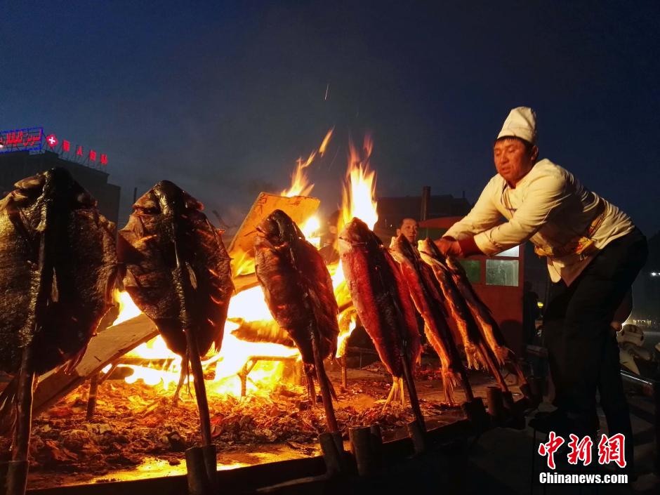 古丝路重镇新疆喀什地区巴楚县夜市一年四季不停歇,每天入夜后,琳琅满目的美食,吸引当地和外地游人品尝美食,休闲聊天。巴楚县城文化路夜市特色美食齐荟萃,人流如织直至凌晨。当地工商部门称,仅文化路夜市经营户最多时达100多家,每天人流过千。巴楚县为新疆南部交通枢纽,商业发达。该县享有“美食之城”的美誉。图为巴楚县有名的烤鱼。中新社记者 王小军 摄