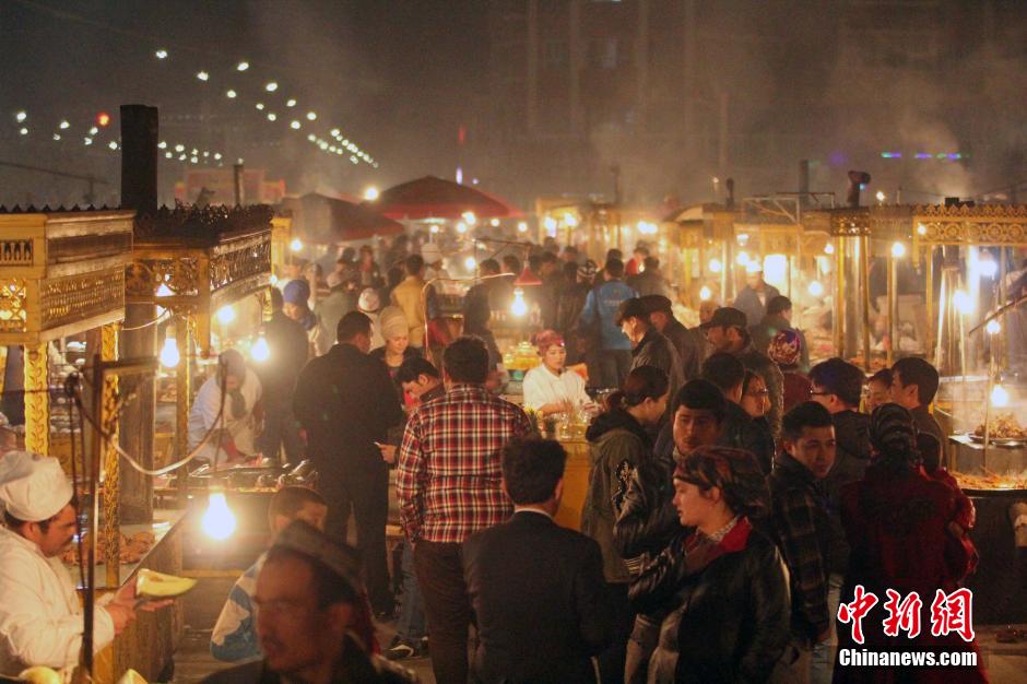 图为巴楚县有名的烤鱼。图为巴楚县夜市一角。中新社记者 王小军 摄