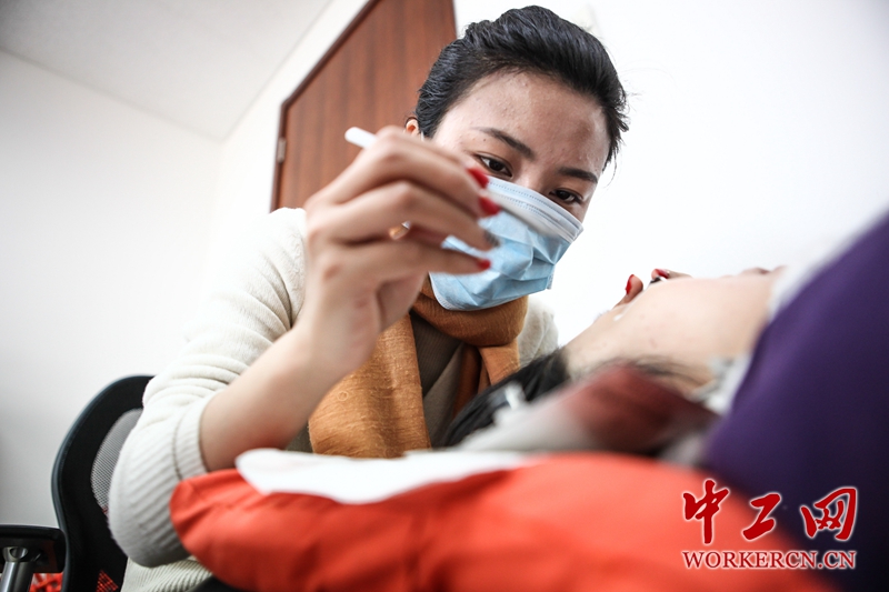 嫁接过程中,娟子的眼睛几乎一眨不眨,一根根的睫毛被她驾轻就熟的嫁接在了顾客原有的睫毛上,非常专业。娟子说:“手艺人的手艺不光是顾客对你个人的评价也是对你背后的app和整个o2o时代的评价,所以我必须准确的做好每一次服务”。 中工网记者张起晨摄