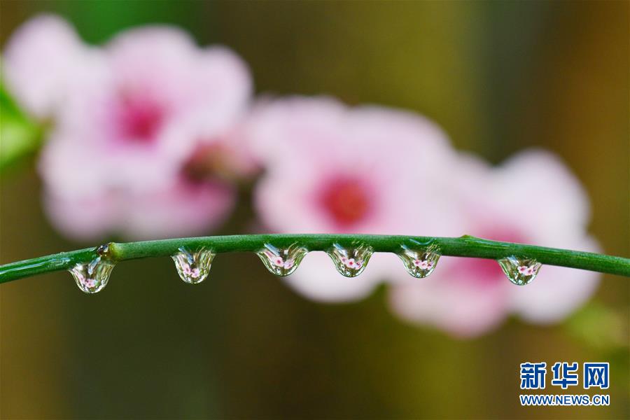 3月2日,贵州省余庆县的桃花与春雨为伴。新华社发(贺春雨 摄)