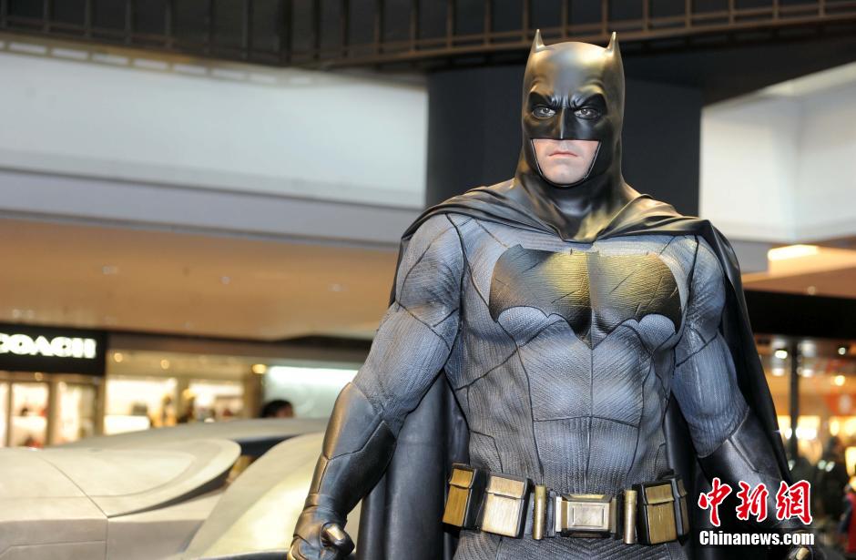 3月3日,蝙蝠侠在香港商场亮相,为电影做势。中新社记者 谭达明 摄