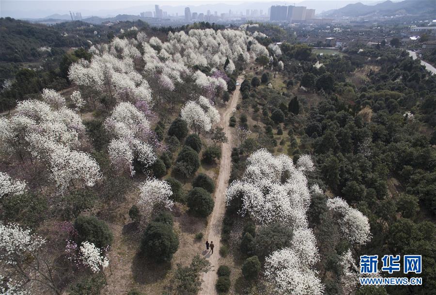 3月4日在长岭村拍摄的玉兰花。近日,浙江省奉化市锦屏街道长岭村北山近千棵玉兰花树大面积开花,将山野变成花海。 新华社记者黄宗治摄