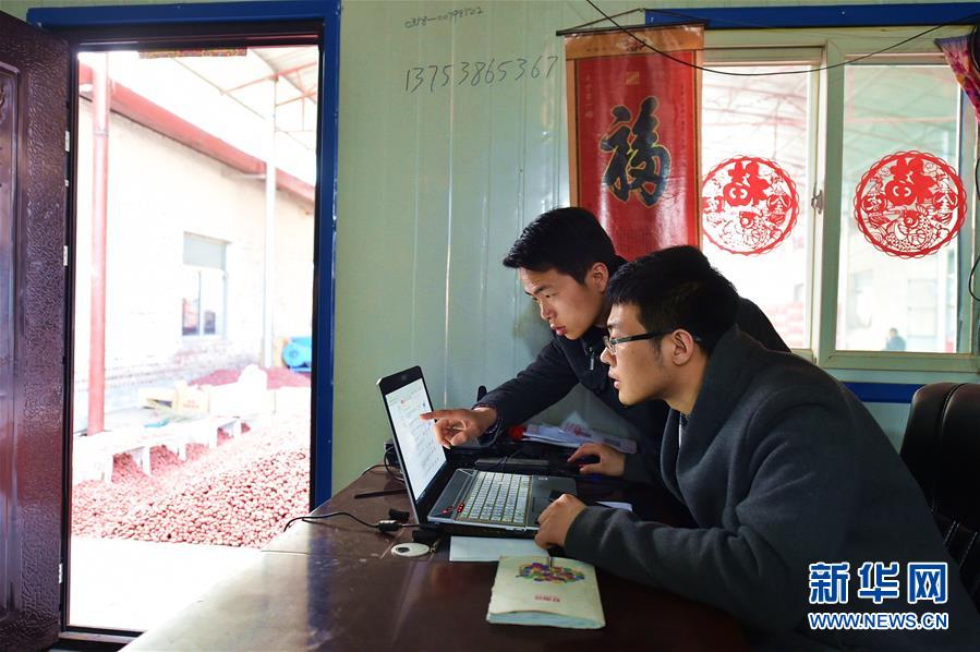 3月4日,天津创客千里驰援山西帮老乡卖枣,“农梦成真”团队成员在处理网络订单。新华社发 曹阳 摄