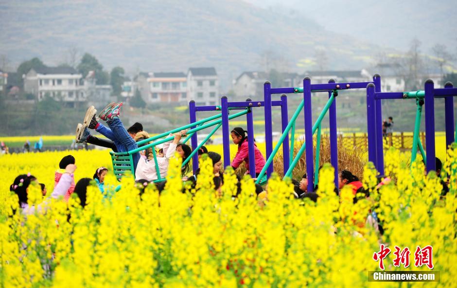 阳春三月,重庆秀山万亩花海迎来大批游客,“人潮”盛开的与油菜“花海”相映成趣。据了解,秀山龙凤花海景区于2013年被入选为首批“中国美丽田园”全国十大油菜花景观之一。景区内共有七十坝、四斗坝、南丘坝、龙凤坝等几个大坝子,坝坝相连,中间没有什么阻隔,一眼望去,2.6万亩油菜花海尽收眼底,是整个武陵山地区面积最宽、规模最大的连片粮油种植基地。每逢油菜花开时节,行走在金色的花海中,犹如置身花的世界,沁人心脾。陈碧生 摄