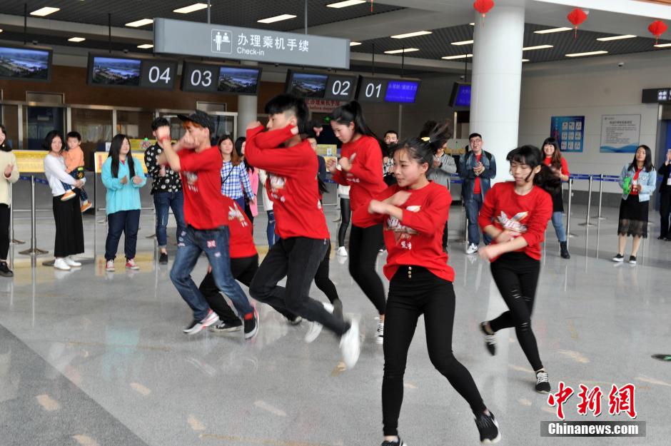 机场候机厅“快闪”表演庆祝通航。 吕明 摄