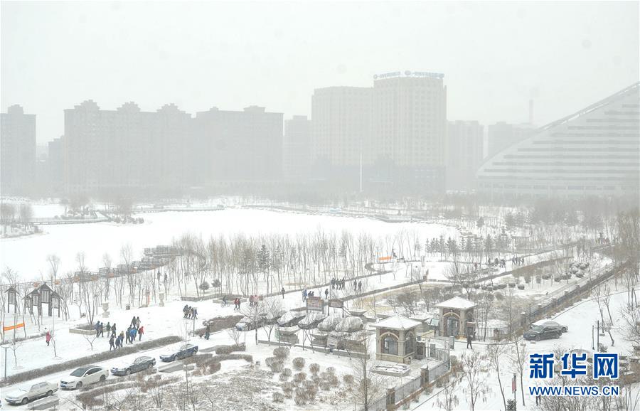 这是3月7日拍摄的长春市内的街道雪景。当日,吉林省多地迎来降雪天气,吉林省气象台9时发布寒潮蓝色预警,预计局地降温幅度可达6-8摄氏度。 新华社记者许畅摄