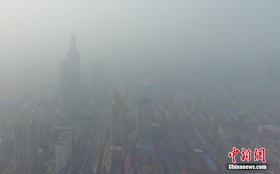 3月7日,从空中俯瞰南京,整个城市被雾霾笼罩。当日,中国长三角地区迎来“雾霾围城”。中新社记者 泱波 摄