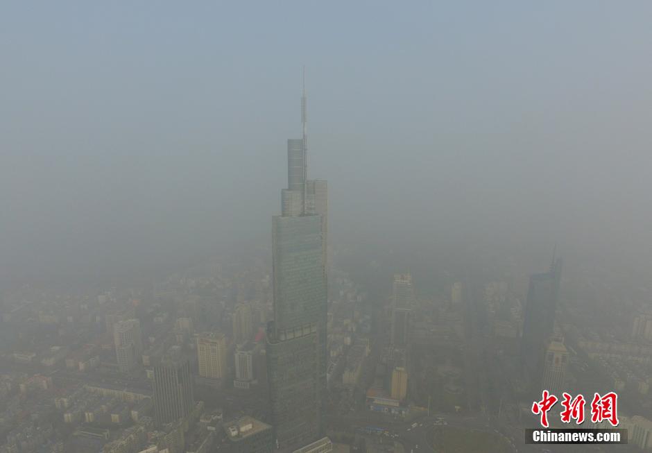 3月7日,从空中俯瞰南京,整个城市被雾霾笼罩。当日,中国长三角地区迎来“雾霾围城”。中新社记者 泱波 摄