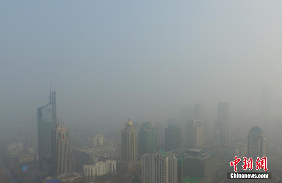 3月7日,从空中俯瞰南京,整个城市被雾霾笼罩。当日,中国长三角地区迎来“雾霾围城”。中新社记者 泱波 摄