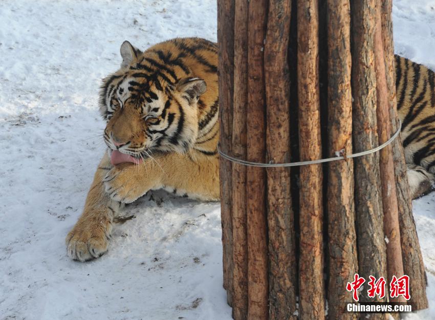 3月7日,一场春雪将吉林省长春市扮成银色的世界,在长春市动植物公园内,虎、狮、狼、猴子等动物们纷纷在雪地中嬉戏,萌态百出,十分可爱。张瑶 摄