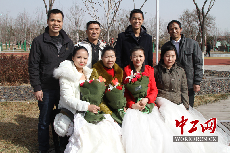 三八妇女节前夕,中建二局三公司唐山分公司为6对农民工夫妻在婚纱影楼定制了全套婚纱摄影服务。唐山分公司女工主任丁玲玲表示:“我们希望今年让女工过一个与众不同的三八节,圆农民工夫妇一个婚纱梦。”