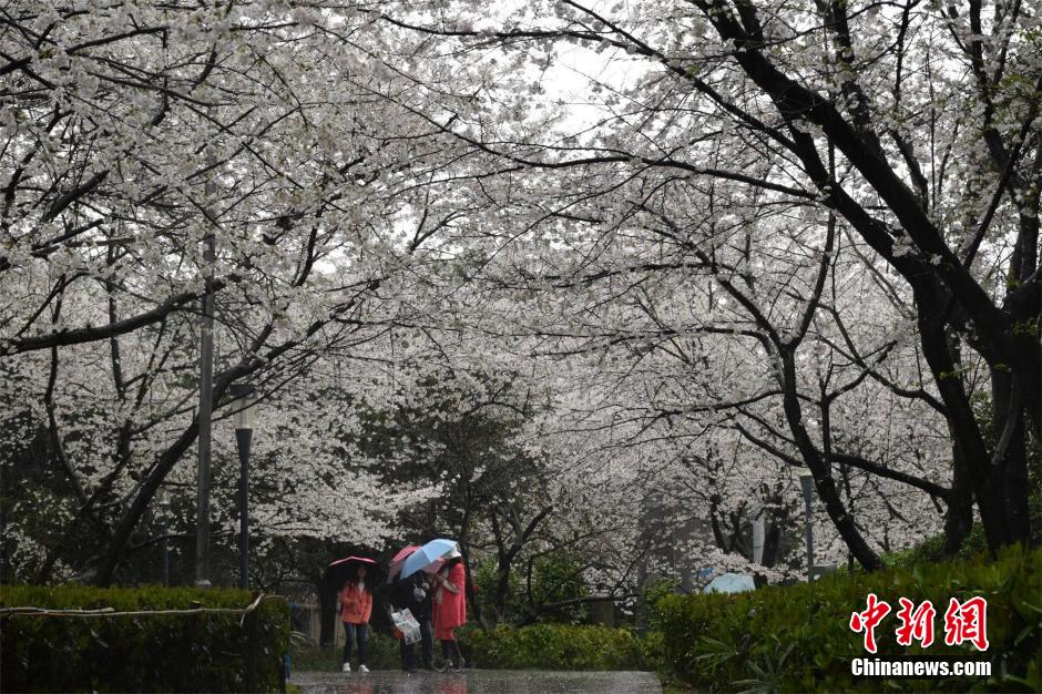 当前正值武汉大学樱花盛开期。3月8日,武汉迎来小到中雨,不少游客冒雨赏樱,体验另一种浪漫。今年,因大规模文物建筑维修和教学楼建设施工,武汉大学樱花大道至樱顶区域完全封闭。樱花开放期间,游客可免费进入参观其他区域樱花,但需提前3天进行网络实名预约。 马芙蓉 摄