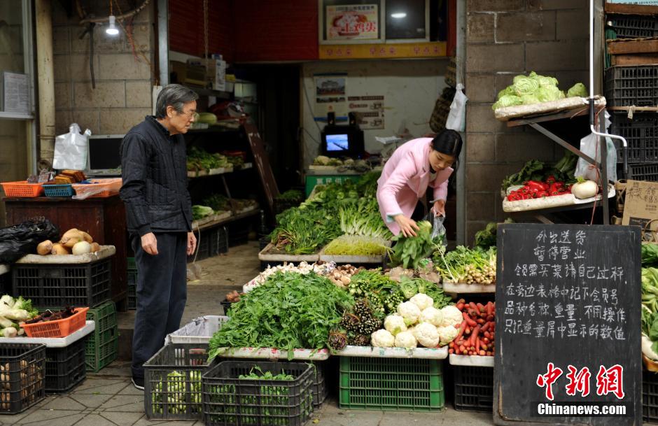 3月8日,成都市成华区香木林路一卖蔬菜的店门外,一小黑板上用粉笔写的操作方法告知来往民众,老板外出送货,买菜自助。小店会员们买菜只需做个买菜登记,便可提着挑选好的菜离开。卖菜的邱先生表示,每次整理账目后,账目都无差,从未发生过丟菜情形。 中新社记者 刘忠俊 摄