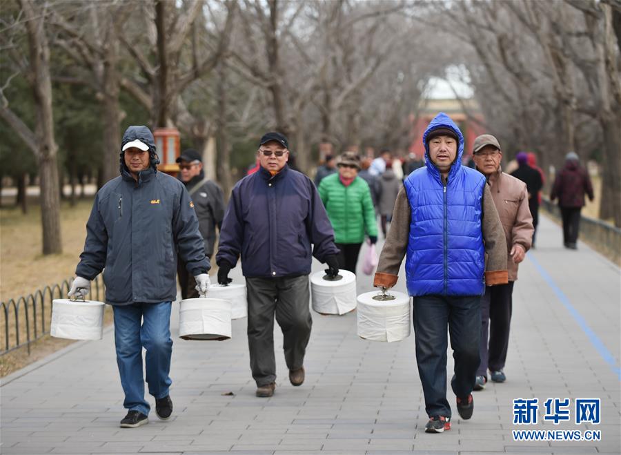 3月8日,穿着严实的老人在北京天坛公园遛鸟。当日,根据北京市气象台9时发布的信息,北京最高气温6℃,夜间最低气温-2℃。气温较前几日明显下降。 新华社记者 李文 摄