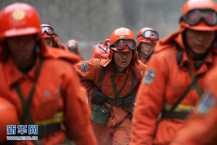 3月9日,武警甘肃省森林总队平凉支队官兵前往火场清理烟点。新华社记者 陈斌 摄 图片来源:新华网
