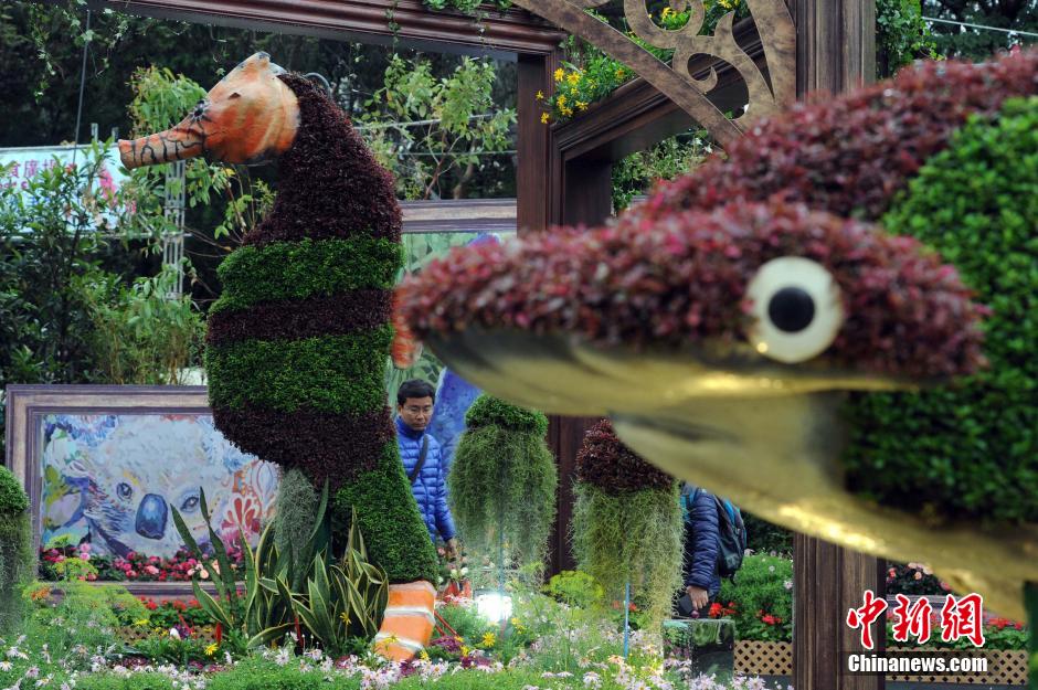 3月10日,香港花展新闻界预展中午维园举行。花展是“欣赏香港”运动的亮点项目之一,由香港特区政府康乐及文化事务署主办。中新社记者 谭达明 摄