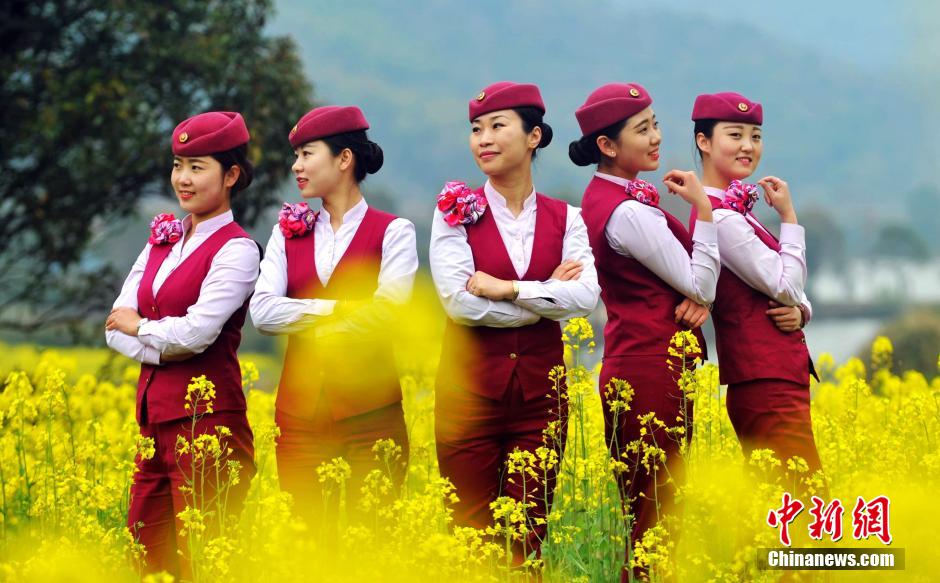 几位“高姐”在油菜花地里摆出各种pose。 鲍赣生 摄