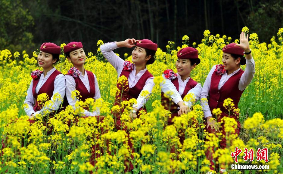 几位“高姐”在油菜花地里摆出各种pose。 鲍赣生 摄