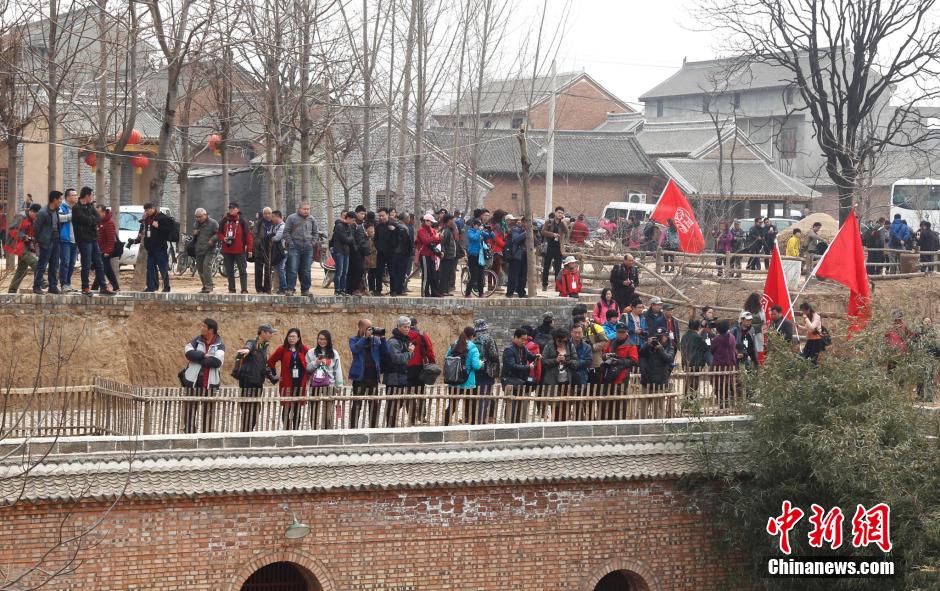 2016年3月12日,河南省焦作市孟州西虢镇,一支由200多名摄影家和发烧友组成的庞大摄影创作团队“进驻”古窑洞集体创作。图片来源:视觉中国