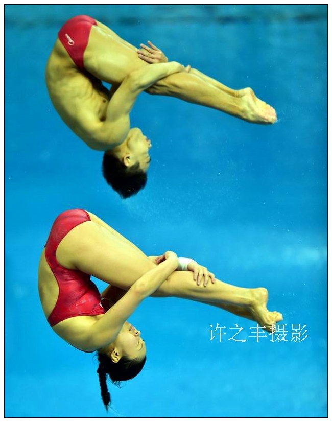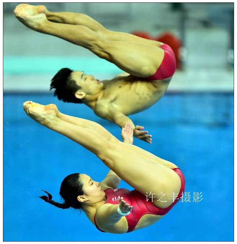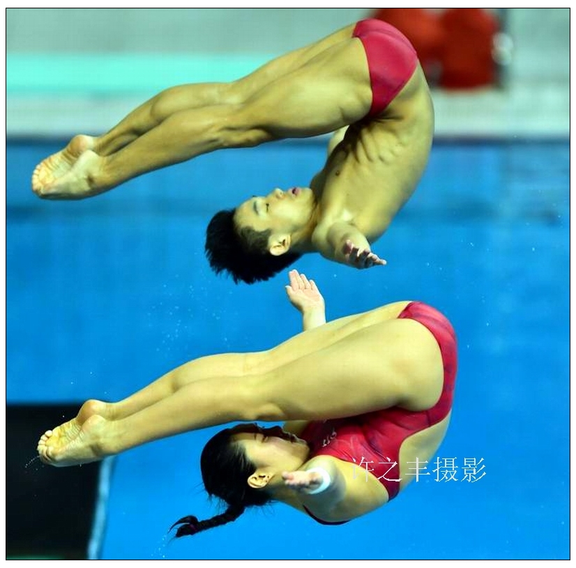 2016年3月12日晚,在国际泳联(FINA)世界跳水系列赛北京赛男女混合双人三米板决赛中,中国选手王涵和杨昊以327.60分的总成绩获得金牌。工人日报中工网记者许之丰摄影2016年3月12日记录于北京