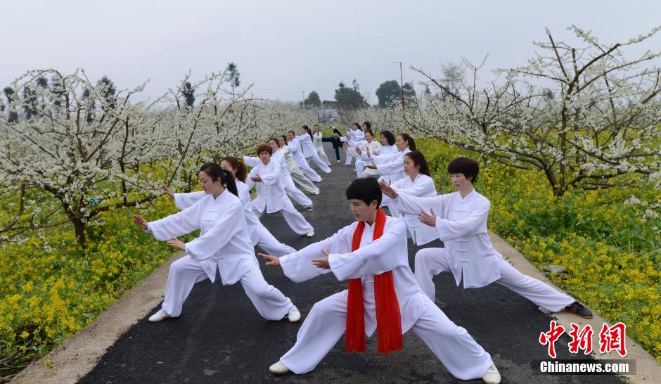 太极拳爱好者在桃花园练功。 徐世钊 摄