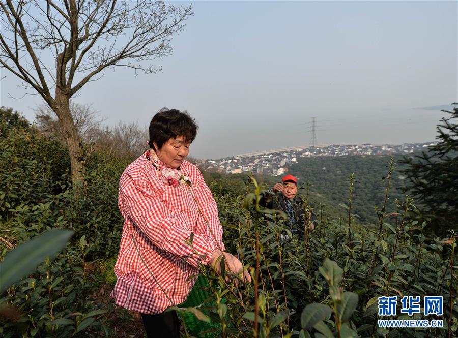 3月14日,在太湖湖畔的东山镇,茶农张阿娣(前)、钱洪方在采摘茶叶。时下,太湖湖畔苏州东山岛的碧螺春茶陆续上市,1.1万亩碧螺春茶迎来采摘期。茶农钱洪方、张阿娣夫妇家种植有4亩茶园,这些天每天早上6点不到,他们便赶到山上茶园采摘鲜嫩的叶芽,忙碌4个小时后下山回到家中,挑拣采好的叶芽、炒制并包装成袋,最后销往经销商。据介绍,苏州吴中区的东山、金庭两镇是洞庭山碧螺春的原产地,2015年东山镇碧螺春销售额达到7000多万元,当地农业部门预计之前的寒潮低温天气对2016年的茶叶产量并无太大影响。新华社记者 季春鹏 摄