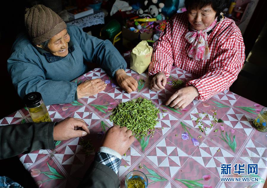 3月14日,在太湖湖畔的东山镇,茶农张阿娣(右)和婆婆李瑞仙在挑拣采好的叶芽。时下,太湖湖畔苏州东山岛的碧螺春茶陆续上市,1.1万亩碧螺春茶迎来采摘期。茶农钱洪方、张阿娣夫妇家种植有4亩茶园,这些天每天早上6点不到,他们便赶到山上茶园采摘鲜嫩的叶芽,忙碌4个小时后下山回到家中,挑拣采好的叶芽、炒制并包装成袋,最后销往经销商。据介绍,苏州吴中区的东山、金庭两镇是洞庭山碧螺春的原产地,2015年东山镇碧螺春销售额达到7000多万元,当地农业部门预计之前的寒潮低温天气对2016年的茶叶产量并无太大影响。新华社记者 季春鹏 摄
