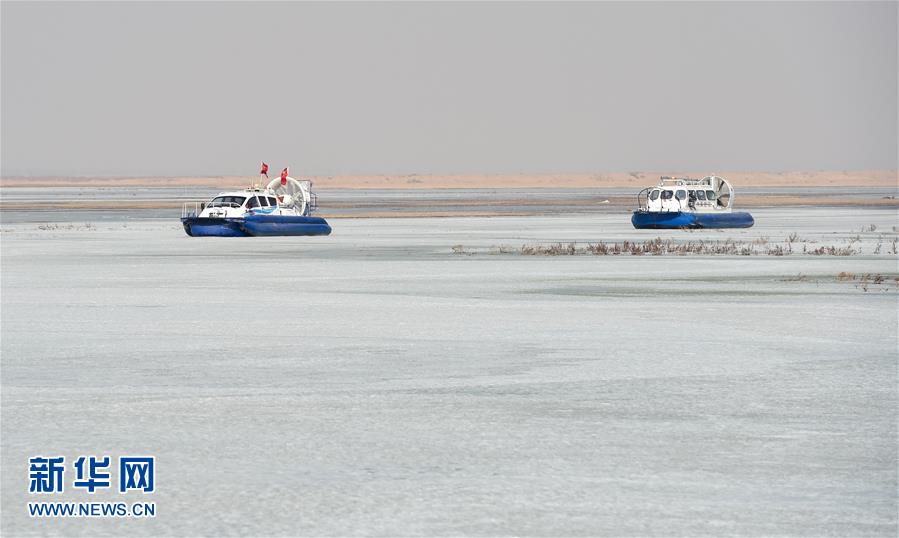 3月15日,达拉特旗民兵黄河防凌爆破队的官兵们乘气垫船在冰面上安放炸药。当日,内蒙古水利厅为确保黄河内蒙古段全线平稳开河,在鄂尔多斯市达拉特旗境内进行了两次防凌爆破作业。利用空投炸弹爆破与冰面爆破去除该段黄河浮冰,排除凌汛险情。新华社记者 连振 摄