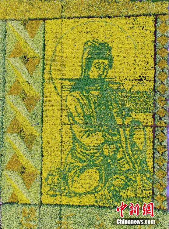 彩色油菜花田里的观音颂春图案。 中新社记者 刘忠俊 摄