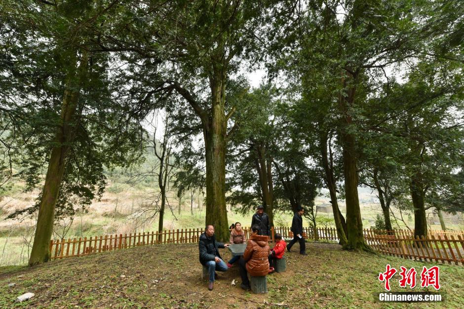 专家表示,该群落的分布集中度、数量之多以及树龄之高都比较少见,十分珍贵。因其罕见,红豆杉群落吸引了不少摄影爱好者前来拍摄。 中新社记者 欧阳常海 摄
