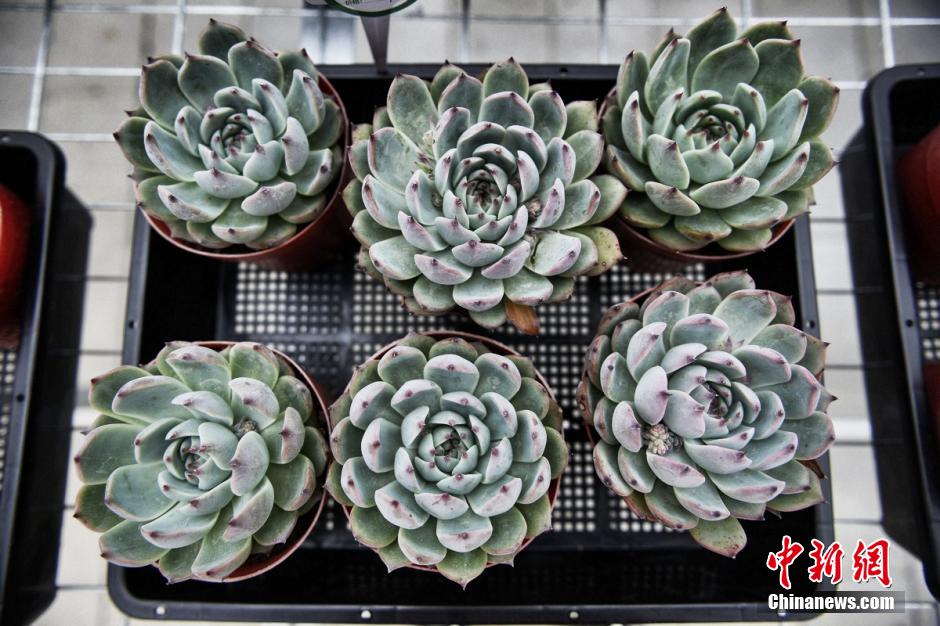 3月15日,湖南省森林植物园的多肉植物展开展,4万余盆可爱的多肉植物吸引了众多游客前来参观。 杨华峰 摄